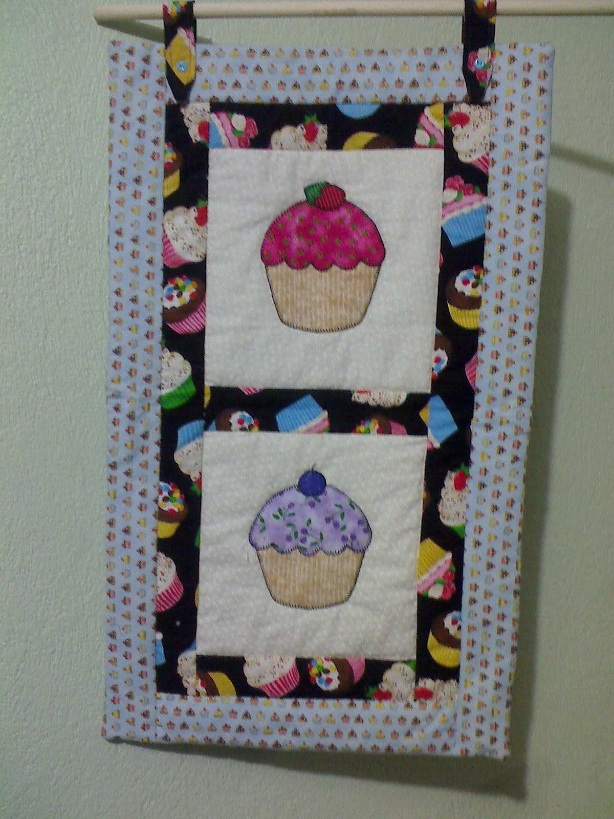Pasando a los proyectos que he realizado, quise hacer en versión pequeña, el quilt que había hecho anteriormente, pueden verlo aquí, la nueva versión es de dos quequitos (pastelitos), además que los reduje de tamaño, al igual que el quilt original, me ha encantado el resultado!!!!